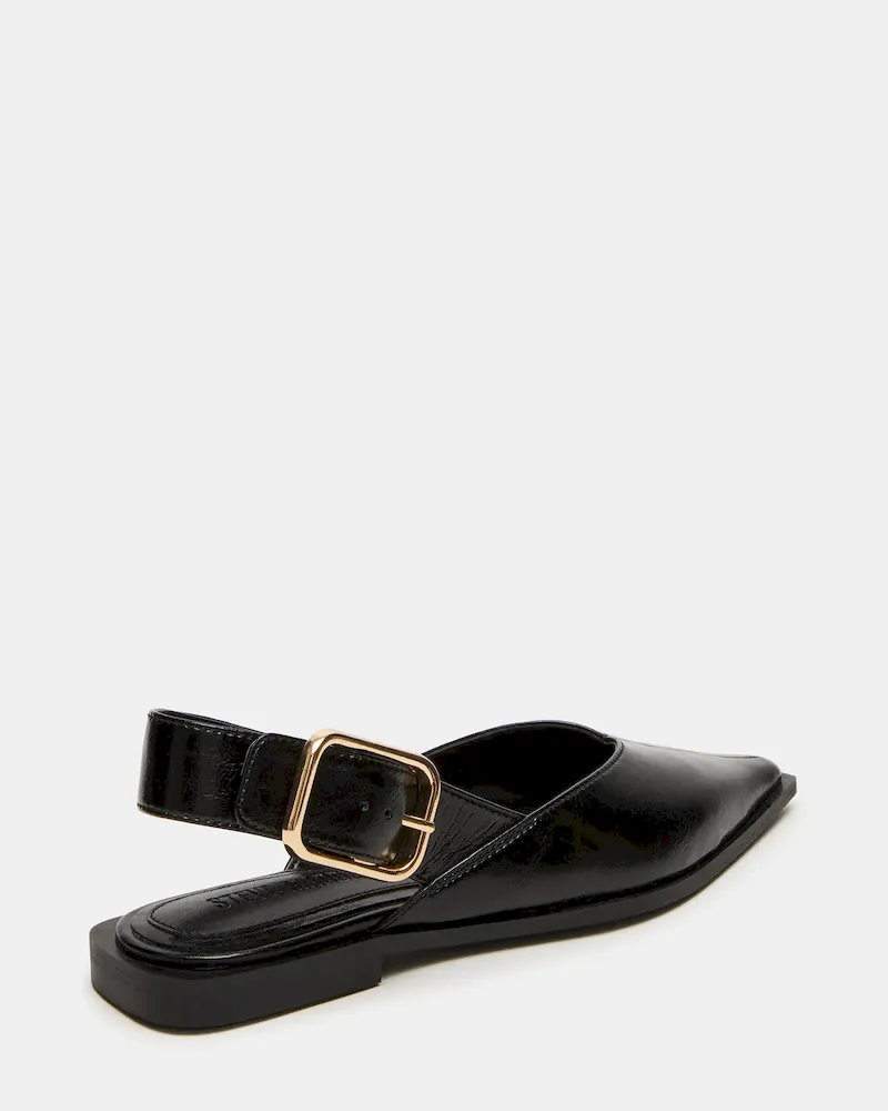 The SHAY BLACK LEATHER is a pointed-toe slingback ballet flat that combines refined style with comfort. Crafted from quality materials, it offers a sleek silhouette perfect for both professional and casual settings. The slingback design ensures a secure fit while maintaining breathability, making it an ideal choice for all-day wear. This flat balances elegance and practicality, enhancing your wardrobe with a versatile, expert-approved footwear option.