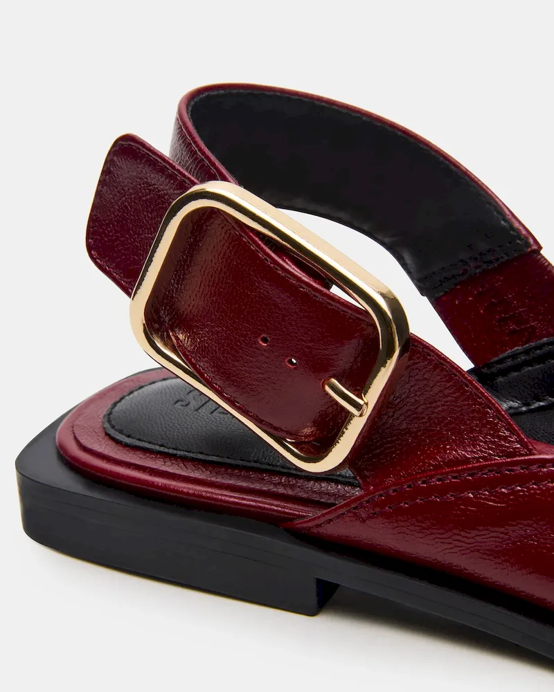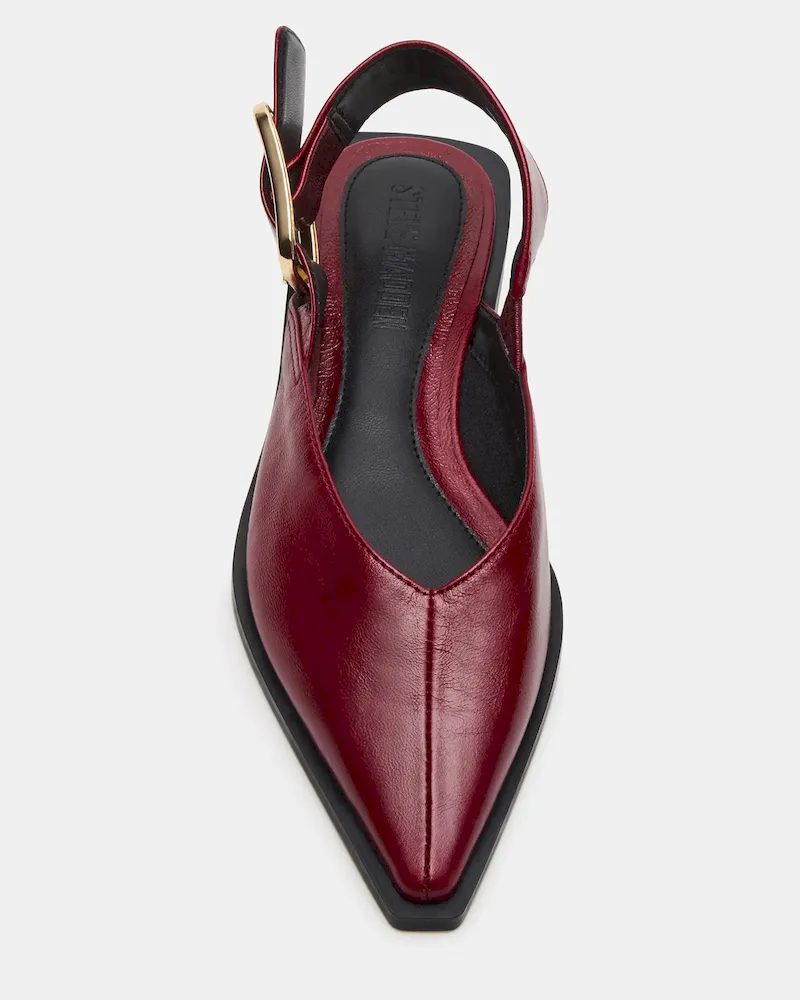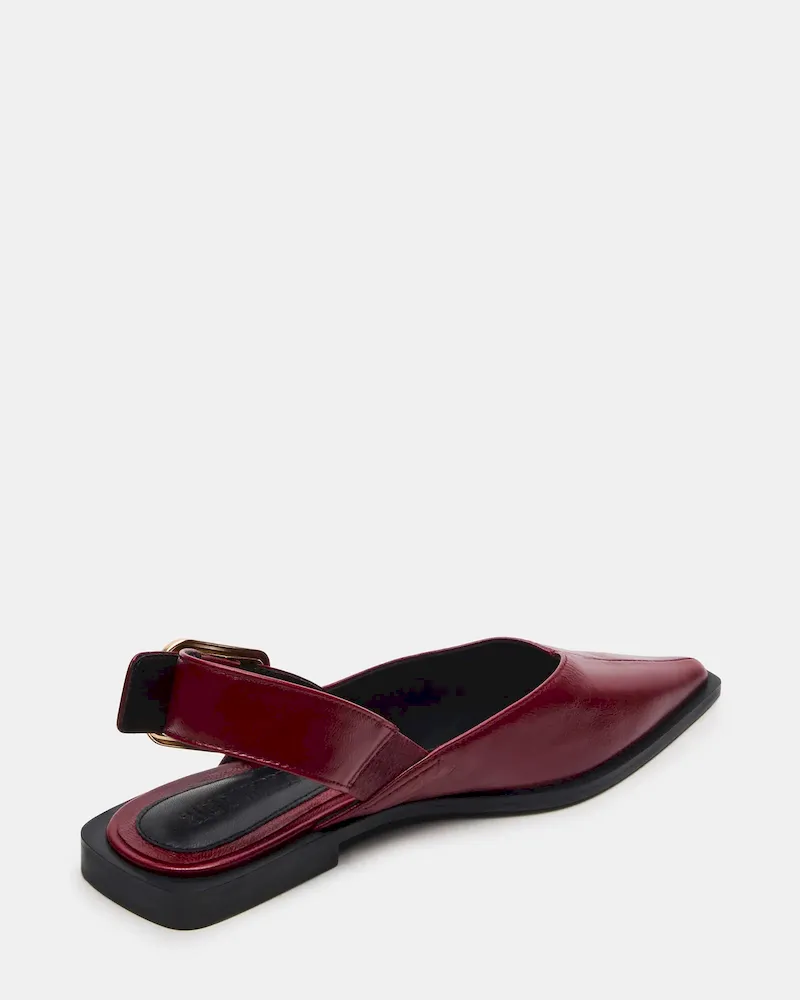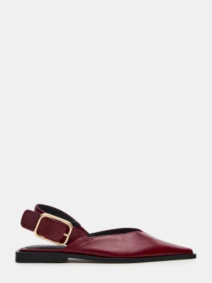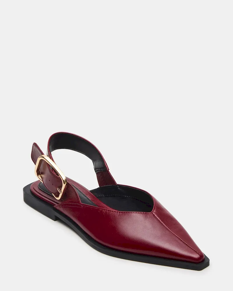 The SHAY BURGUNDY LEATHER is a pointed-toe slingback ballet flat that combines refined style with comfort. Crafted from quality materials, it offers a sleek silhouette perfect for both professional and casual settings. The slingback design ensures a secure fit while maintaining breathability, making it an ideal choice for all-day wear. This flat balances elegance and practicality, enhancing your wardrobe with a versatile, expert-approved footwear option.