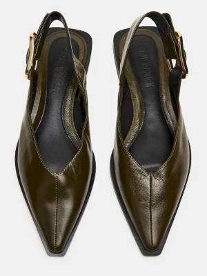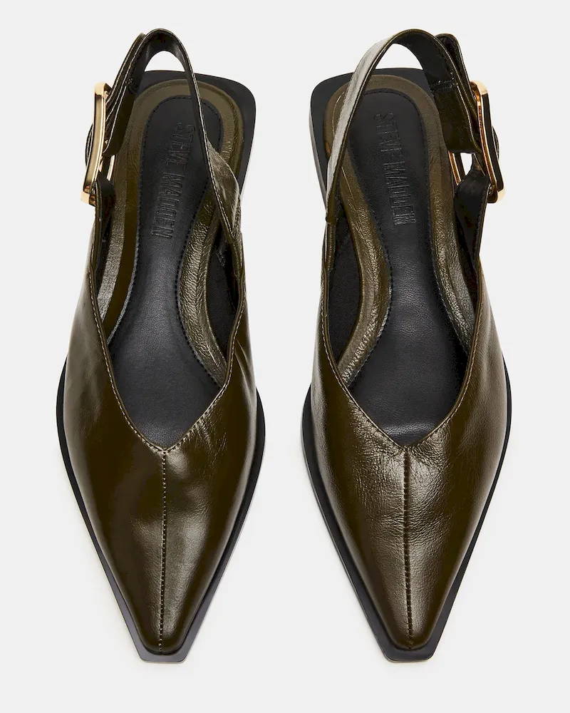 The SHAY OLIVE LEATHER is a pointed-toe slingback ballet flat that combines refined style with comfort. Crafted from quality materials, it offers a sleek silhouette perfect for both professional and casual settings. The slingback design ensures a secure fit while maintaining breathability, making it an ideal choice for all-day wear. This flat balances elegance and practicality, enhancing your wardrobe with a versatile, expert-approved footwear option.