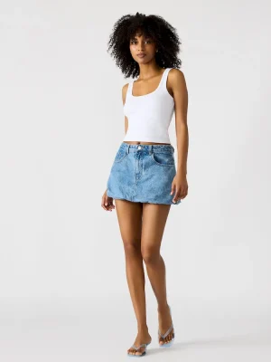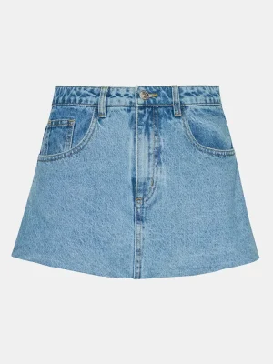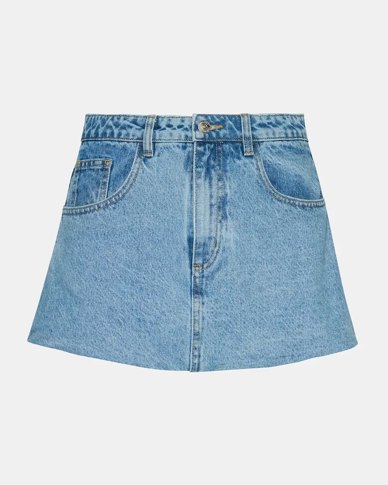 Expertly crafted for style and comfort, the SIMONA skirt is a must-have addition to your wardrobe. Featuring a zipper and button closure, as well as convenient pockets, this denim mini skirt offers a chic and practical solution for any outfit. Elevate your look with this versatile piece.