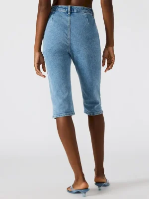 The SKINNY RINA DENIM CAPRI pant is a must-have for any fashion-forward individual. Its skinny fit, zipper, and button closure, and matching set make it a versatile piece that can be dressed up or down.