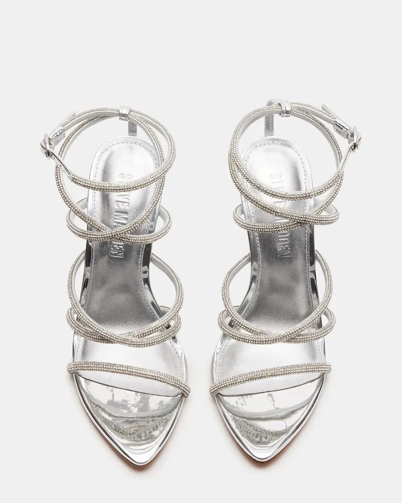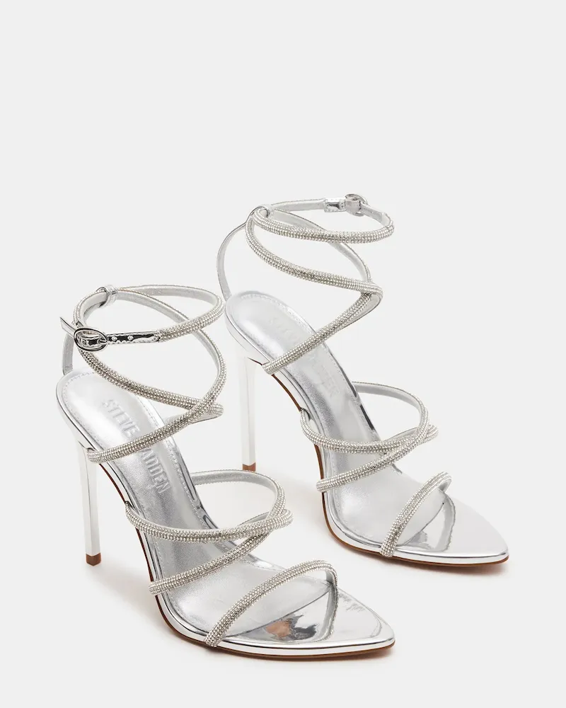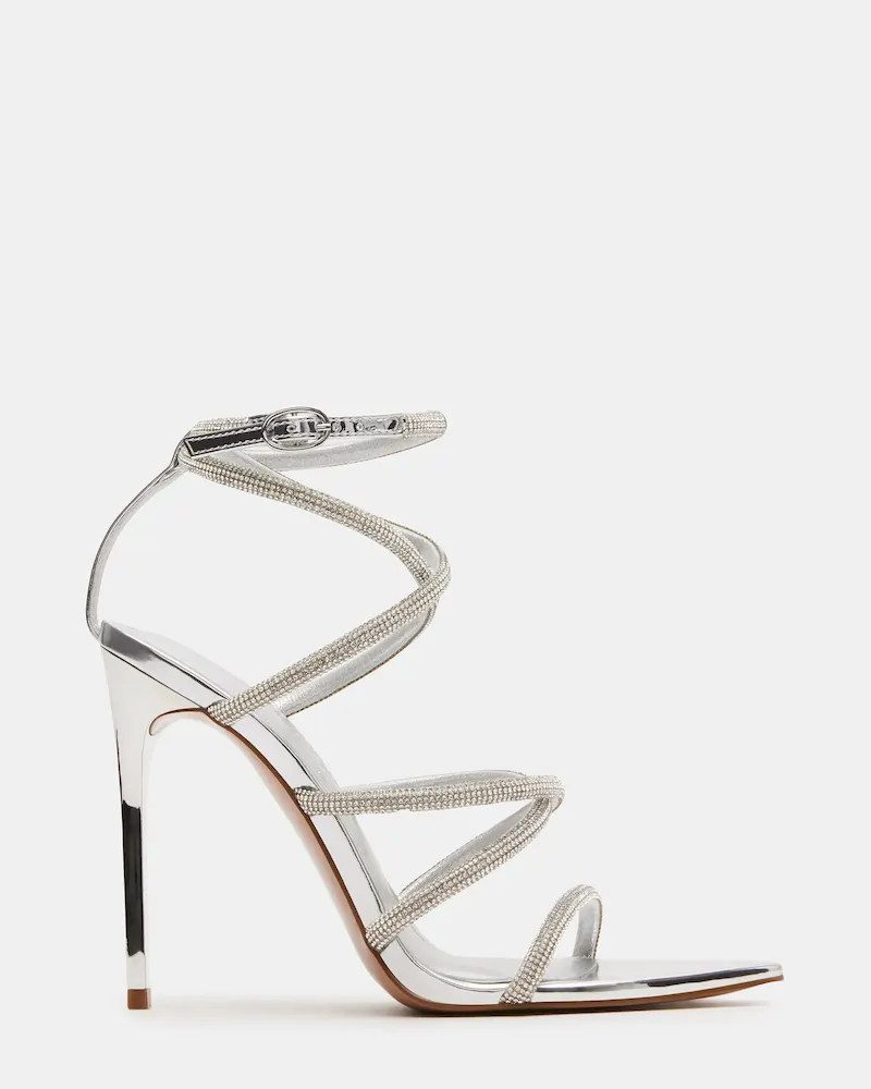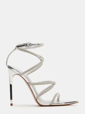 Introducing SKY, the ultimate combination of elegance and femininity. These strappy stiletto heels feature a pointed toe for a sleek and sophisticated look, while the rhinestone embellishment adds a touch of sparkle. Elevate any outfit with these stunning shoes, perfect for any occasion.