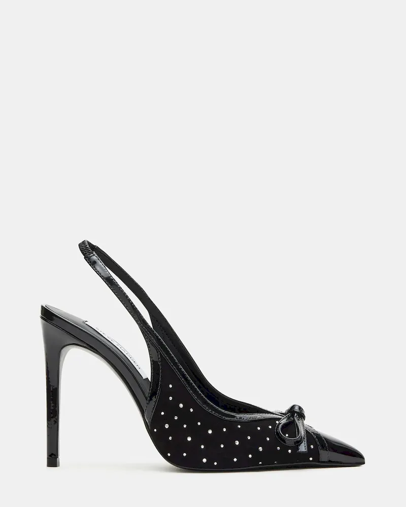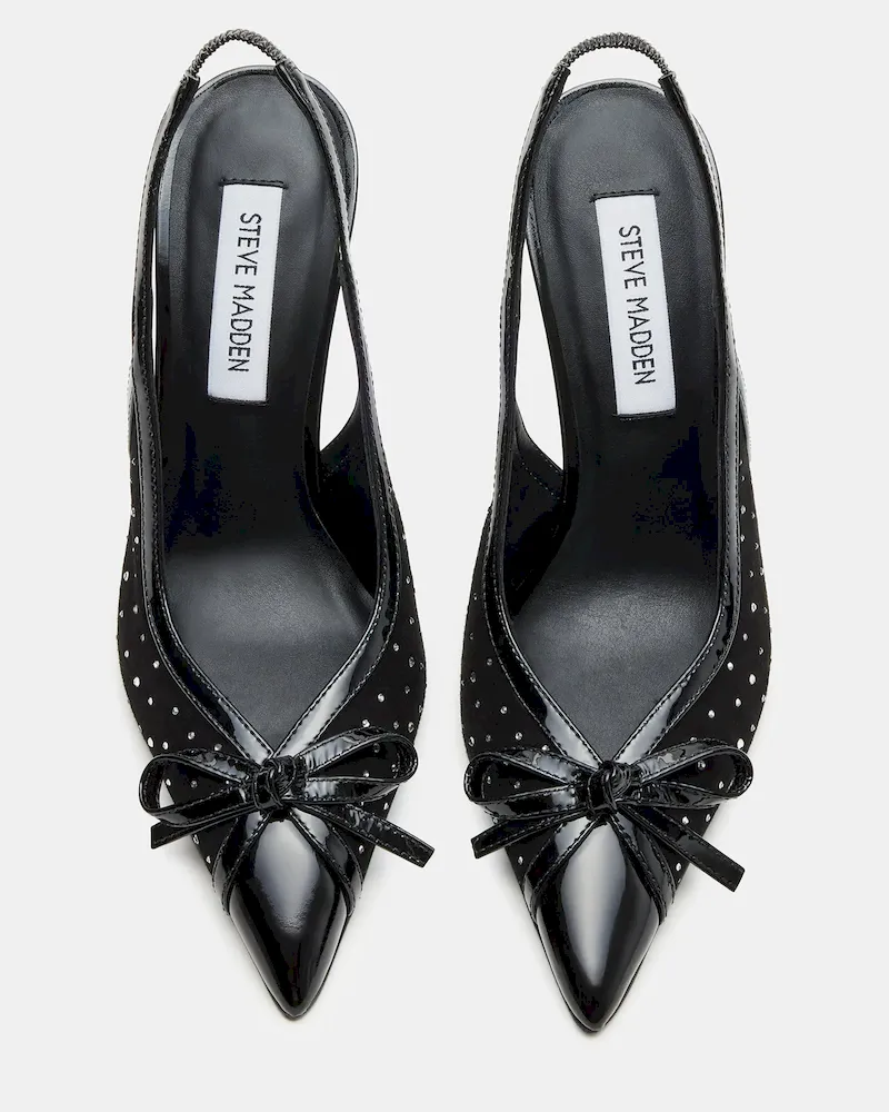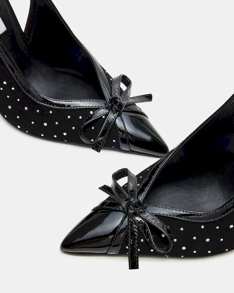 Elevate your style with our Sleek stiletto heels. Featuring a pointed toe and slingback design, these heels add a touch of sophistication to any outfit. The elegant bow and rhinestone details add a touch of sparkle, making you stand out in any crowd.
