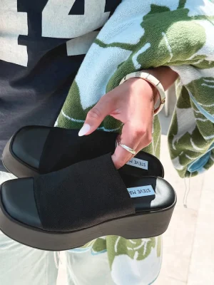 True SM stans can’t help but love this iconic sandal, the SLINKY. Characterized by a sculpted platform sole and stretchy fabric upper, this shoe is recognizable for any Steve Madden fan.
