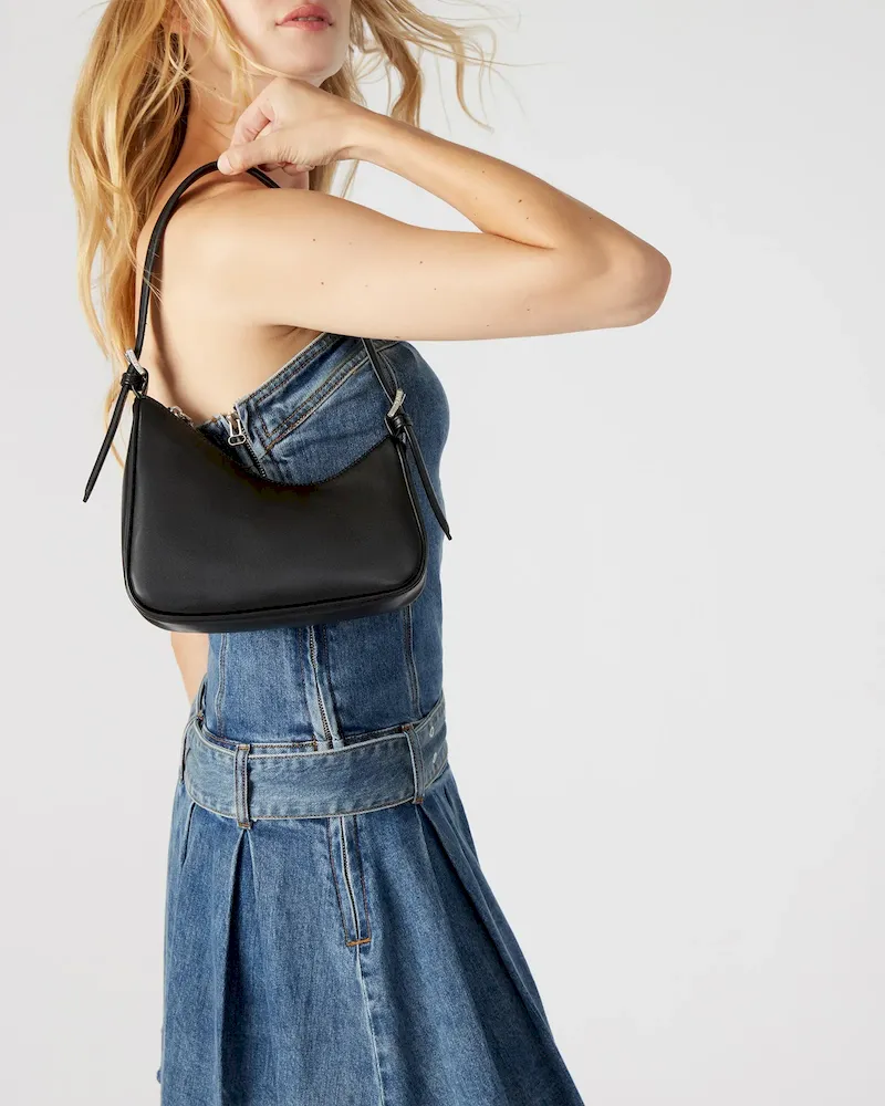The SMITH bag boasts an eye-catching asymmetrical design. Its zip closure ensures your belongings stay secure, while the interior pouch on the back wall provides convenient organization. Elevate your style with this stunning shoulder bag.