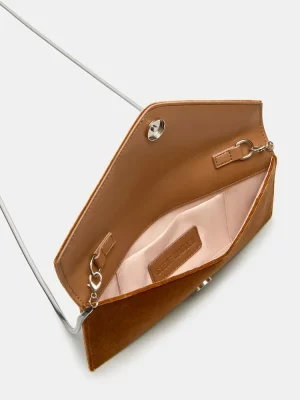 Expertly designed, the SMOOTH bag offers a sleek envelope-style clutch bag with a magnetic snap closure. The bold logo design and chain crossbody strap add a touch of sophistication, while the back wall slit pocket provides convenient storage. Elevate any outfit with this modern and functional bag.