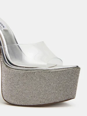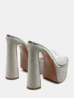 Introducing our SOIREE, a stunning mule featuring glitzy rhinestones and a clear upper for an ultra-luxe look. The pointed toe and block heel add elegance while the ultra platform offers comfort for all-day wear. Sparkle and shine in these sophisticated statement shoes.