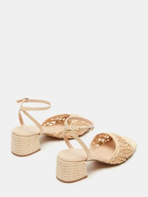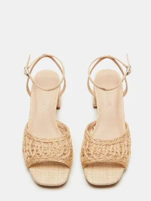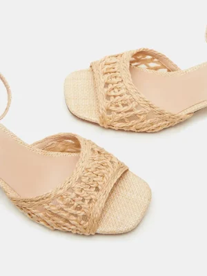 Elevate your style with the SOLEIL. This square-toe raffia sandal features a beautifully woven design and a practical block heel, perfect for all-day wear. The secure ankle strap adds stability to your stride, making these heels both stylish and functional.