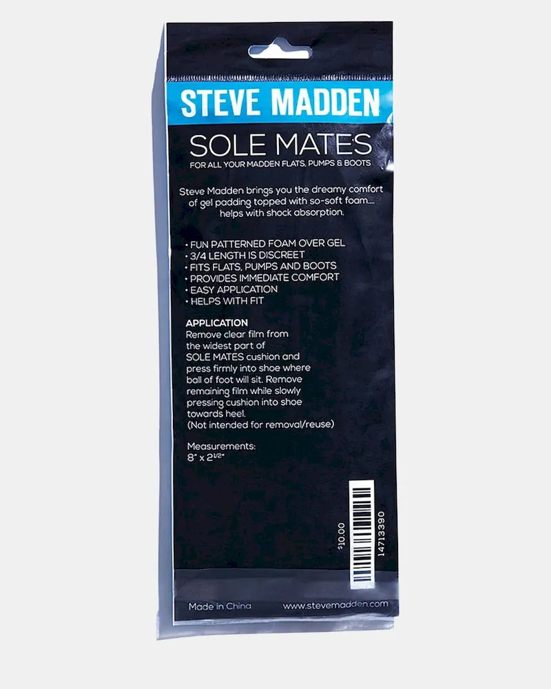 Steve Madden brings you cushiony comfort that goes from the ball of your foot all the way to your heel…helps with shock absorption. Madden’s patterned gel pads cushion the back of the heel and keep the foot from slipping out of shoes.