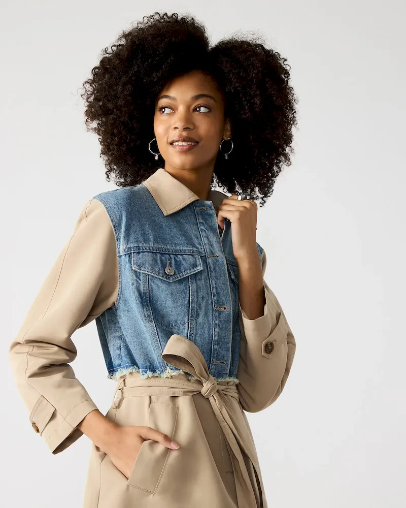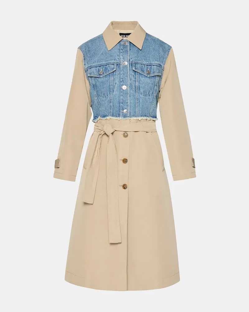 Expertly crafted from a blend of denim and khaki, the SORAYA coat is a versatile and stylish addition to your wardrobe. With two functional front pockets and a tie-front waistline, this long-sleeved coat offers both functionality and fashion. Perfect for any occasion, its collared neckline adds a touch of sophistication to any outfit.
