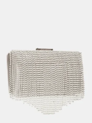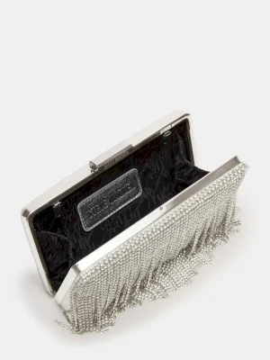 Elevate your style with the SPARKLI bag. This rhinestone fringe clutch features a convenient crossbody strap and a secure clasp closure, perfect for a night out or special occasion. The dazzling rhinestones will add a touch of glamour to any outfit.