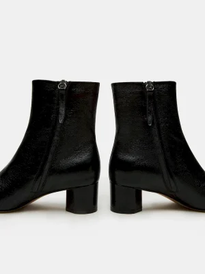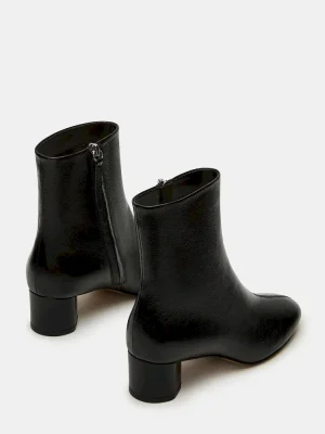The STROME ankle boot features a rounded toe and a sturdy block heel, combining classic style with reliable support. Crafted for both comfort and durability, this bootie is an excellent choice for elevating your wardrobe with a sleek, polished look. Its unique finish adds a sophisticated shine, making it versatile for day-to-night wear.