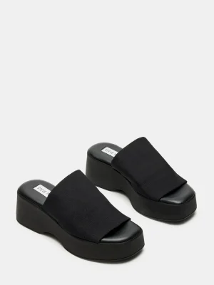 True SM stans can’t help but love this iconic sandal, the SLINKY. Characterized by a sculpted platform sole and stretchy fabric upper, this shoe is recognizable for any Steve Madden fan.2.25 inch heel height1.25 inch platformTextile upper materialSynthetic liningVegan leather sockSynthetic soleImported