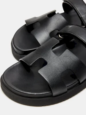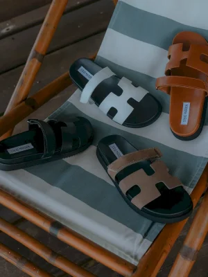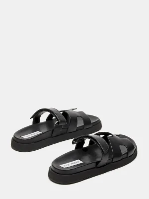 SPORTY + SMART + RELAXEDThe leather MAYVEN slides feature comfy construction details like a molded footbed, a treaded flatform sole, and an adjustable top strap, plus a front strap with a geometric cutout design.Leather flatform slideSlip-on style with adjustable top strapCutout details on wide front strapHook-and-loop adjustable top strapMolded footbed1.25 inch heel heightLeather upper materialSynthetic liningSynthetic soleSynthetic sockFit tip: runs small, size up a half sizeImported