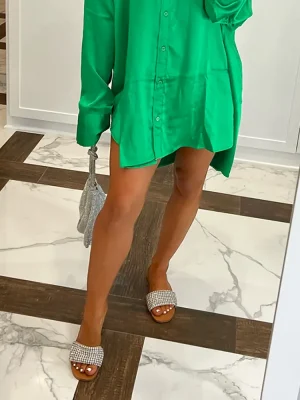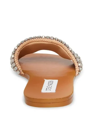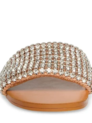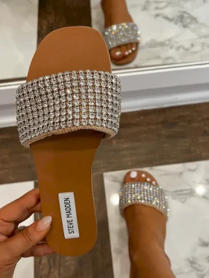 Sometimes a gal just needs a little bling. HEATHER is an easy slide sandal with rhinestone accents, perfect for wearing with shorts and miniskirts. Textile upper material with stonesTextile liningSynthetic sole.5 inch heel height Imported