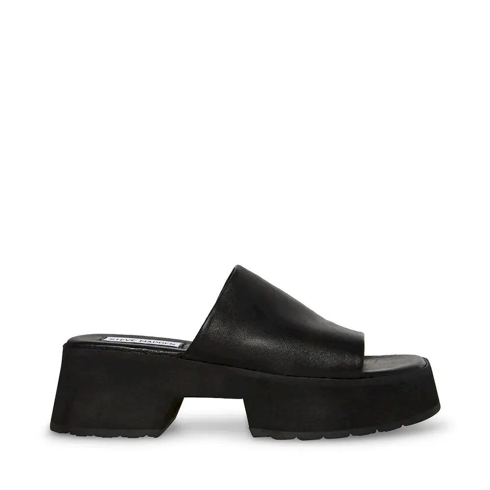EFFORTLESS + SHARP + EFFICIENTThe single wide leather strap of the SAMMIE slide makes this chunky platform sandal easy for every day style.Platform heel leather slide sandalLug sole2.25 inch heel height1.25 inch platformLeather upper materialUnlinedSynthetic sockSynthetic sole Imported