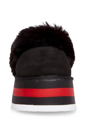 Equal parts comfort and style, ALIANA crosses a cozy faux fur-lined slipper upper with a fun flatform sole. A stretchy elastic back strap holds the shoe securely in place. Microsuede and faux fur upper materialFaux fur liningMan-made sole2.25 inch heel height Imported