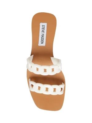 Smooth faux chain straps give these staple sandals a sexy upgrade. Forget boring two strap flat sandals and make way for BONNI.Synthetic upper materialSynthetic liningSynthetic sole.5 inch heel height Imported