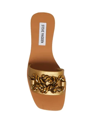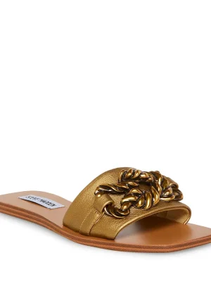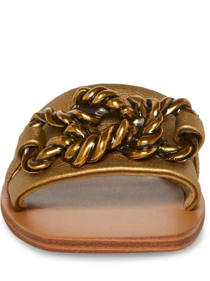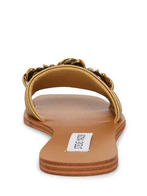 An easy slide that looks good with just about anything is a summer wardrobe essential. ILANA is a flat sandal with gold hardware accents and a square toe. Vegan leather upper material with ornamentsTextile and vegan leather liningSynthetic sole.5 inch heel height Imported