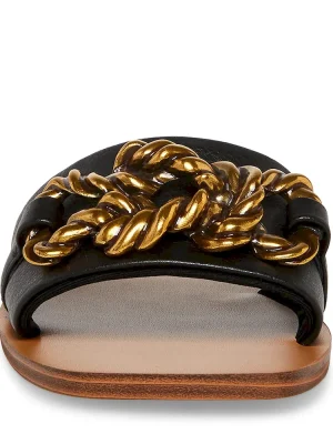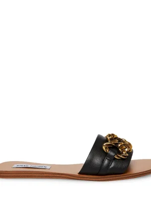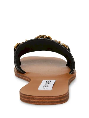 An easy slide that looks good with just about anything is a summer wardrobe essential. ILANA is a flat sandal with gold hardware accents and a square toe. Vegan leather upper material with ornamentsTextile and vegan leather liningSynthetic sole.5 inch heel height Imported