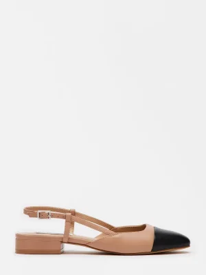 POLISHED + DAINTY + CLEVERA low block heel, a delicate slingback strap, and an almond toe give the the BELINDA mule its sleek, elevated look.Low heel slingback muleSlingback strap with buckle closureAlmond toe1 inch heel heightLeather upper materialSynthetic liningSynthetic sockSynthetic soleFit tip: if you are in between sizes, size up a half sizeImported