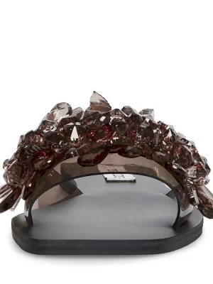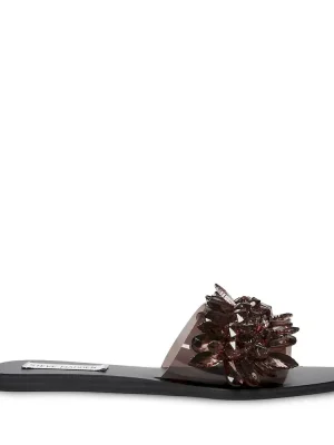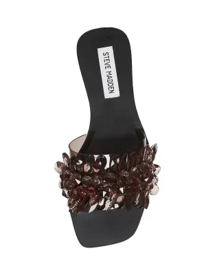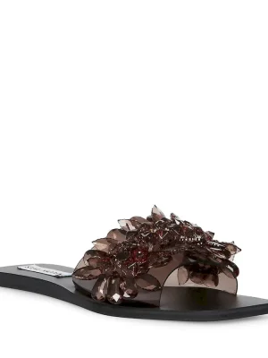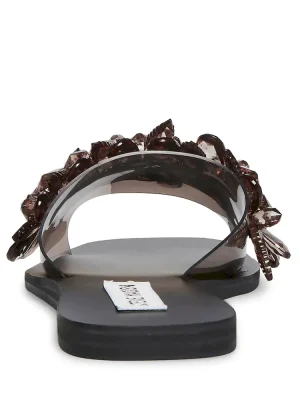 Pretty and charming, MILEY is an everyday sandal that you can dress up or down. Slip on this flower embellished style anytime you want to bring a chic appeal to your look. Vinyl upper material with plastic ornamentsUnlinedSynthetic sockSynthetic sole.5 inch heel height Imported