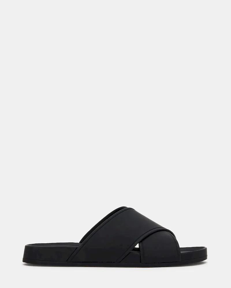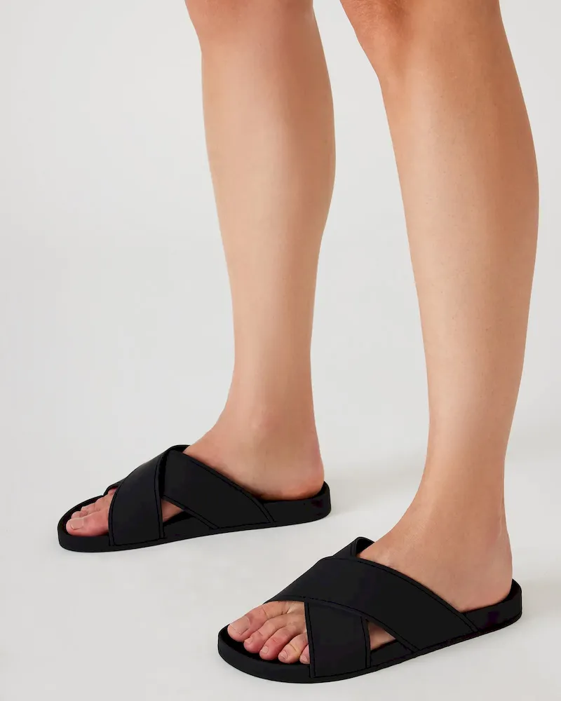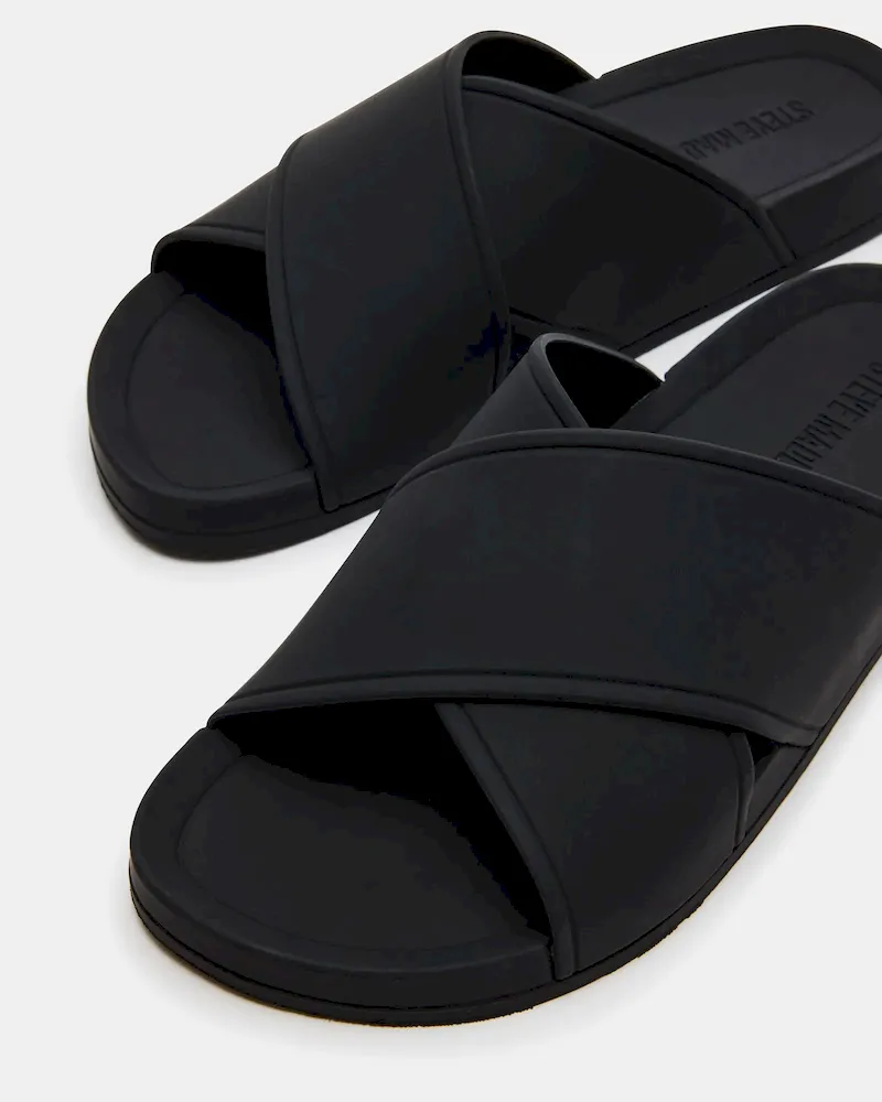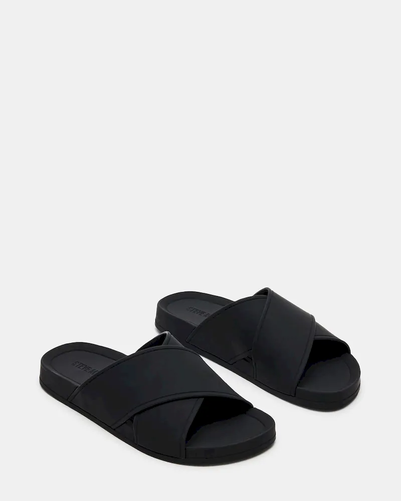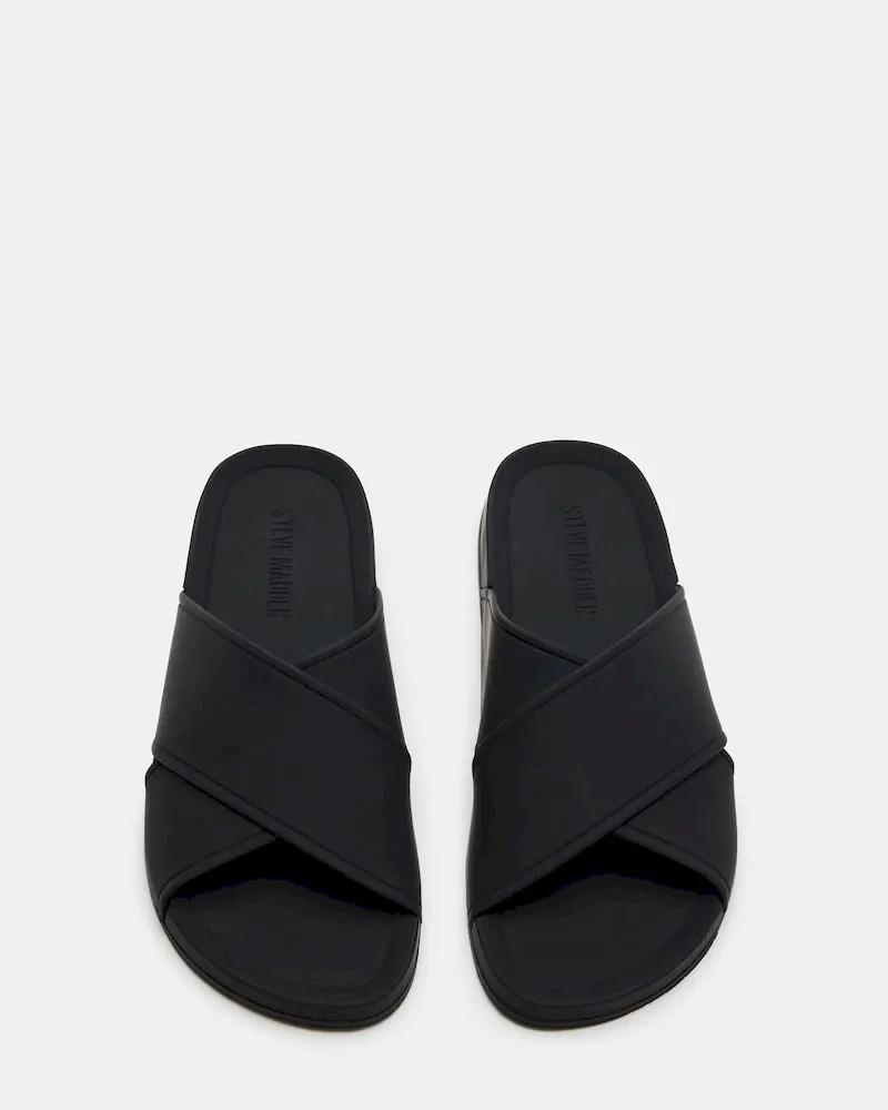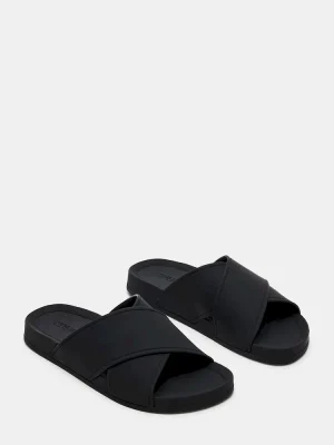 Slip into style with the KATELYN slide sandal. The criss-cross design on the front strap adds a touch of flair to this casual slip-on. Perfect for any laid-back occasion, these sandals are a must-have addition to your wardrobe.1 inch heel heightSynthetic upper materialSynthetic liningSynthetic sockSynthetic soleImported