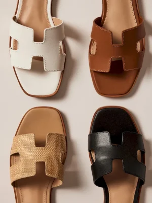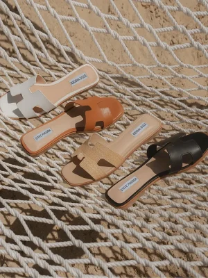 Geometric cutouts on the wide single strap of the HADYN slide give this flat sandal design a fresh feel.Slip-on styleCutout details on strap.75 inch heel heightLeather upper materialSynthetic liningSynthetic sockSynthetic soleImported