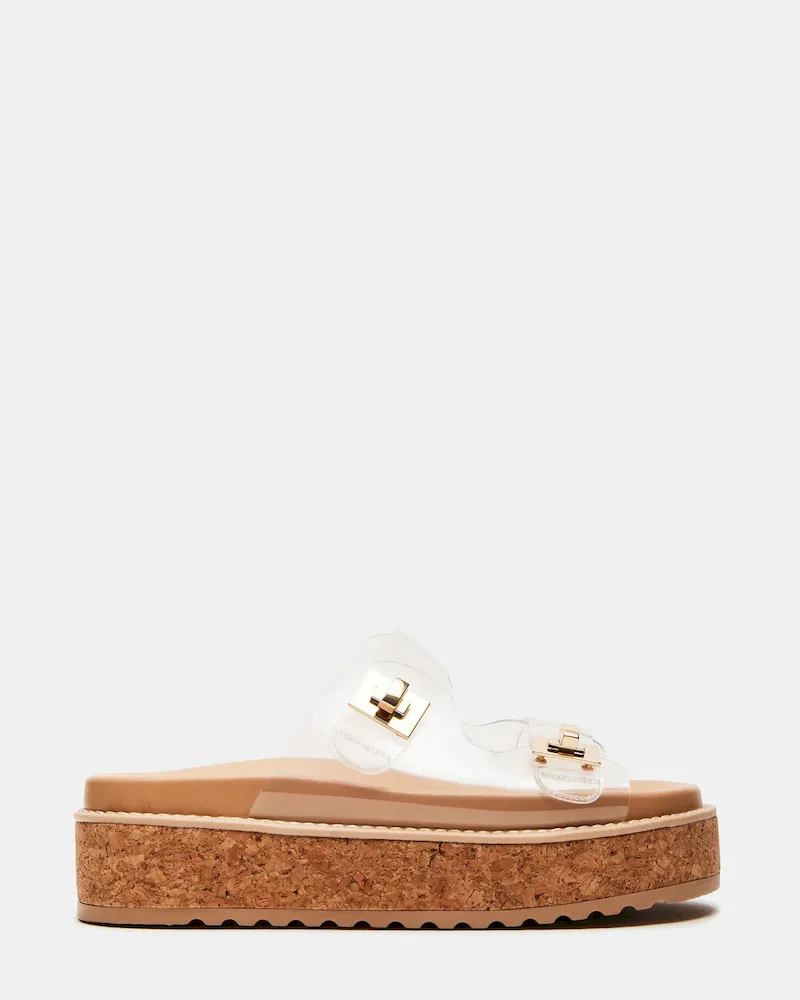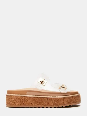 Elevate your style with the BIGSCHMONA platform slide sandal. The flatform design provides a modern twist while the turn-lock hardware accent adds a touch of sophistication. Step up your fashion game while enjoying the comfort and stability of this versatile shoe.2 inch heel heightPVC upper materialUnlinedSynthetic sockSynthetic soleImported