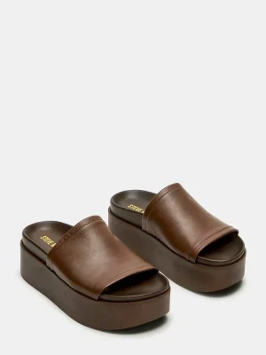 The ARWEN slide sandal features a platform flatform design and rounded toe for a trendy yet comfortable look. With a chunky footbed, this sandal offers both style and support. Elevate any outfit with these versatile and chic sandals.2.25 inch heel heightLeather upper materialSynthetic liningSynthetic sockSynthetic soleFit tip: If you are in between sizes, size up a half-sizeImported