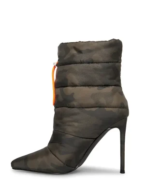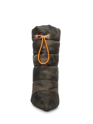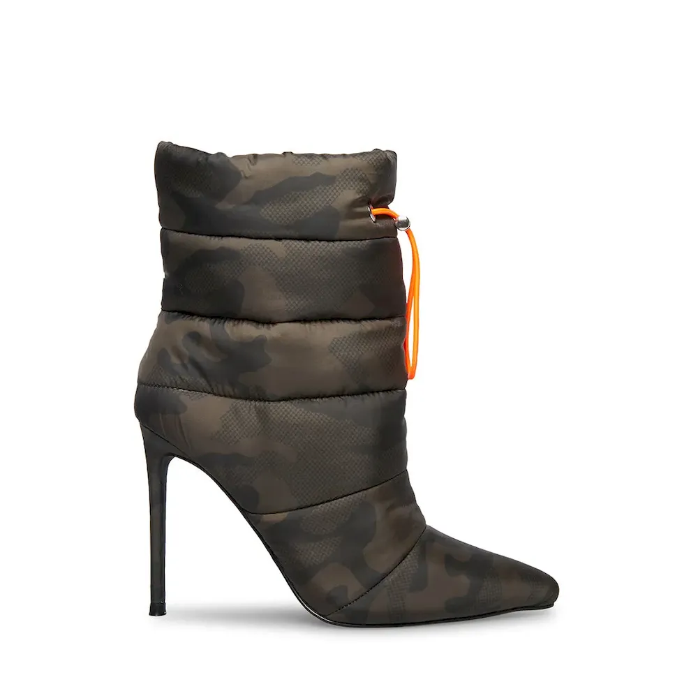 Featuring a puffy insulated upper, CLOAK puts a seasonal spin on the stiletto! Hit the streets in this cool camouflaged pick, which keeps unwanted cold air out via a contrasting orange drawstring.