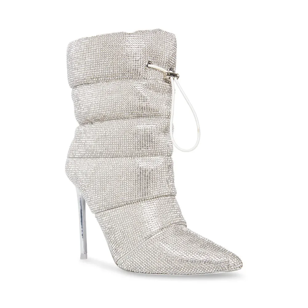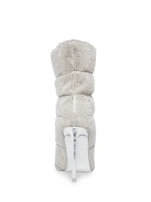 Take on the elements in style with CLOAK-R. This stiletto heel bootie is designed with a sleek pointed-toe and rhinestone embellishments, keeping cold weather outfits right on-trend.Textile upper material with rhinestonesTextile liningSynthetic sole4 inch heel height14.25 inch shaft circumference6 inch shaft height Imported