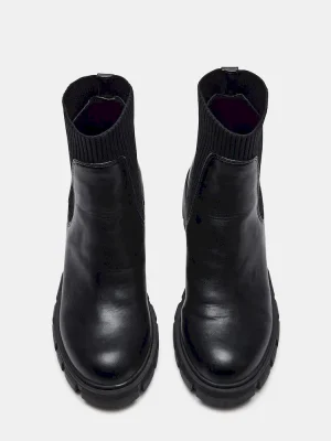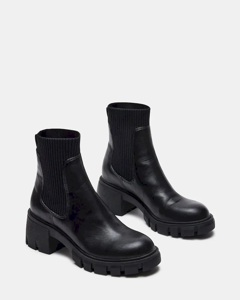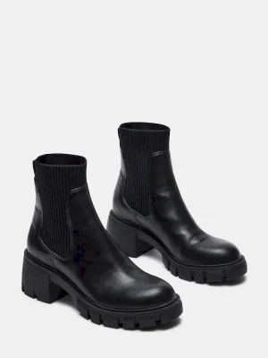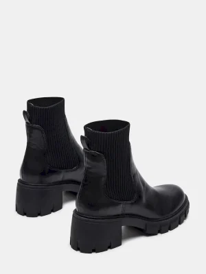 Bring a rugged yet chic appeal to your chilly weather looks in HUTCH. A stacked block heel and lug sole add a utilitarian feel to dresses and denim alike. Tight fit around the ankleSoft ribbed knit and unit bottom for maximum comfort2.5 inch heel height9.25 inch shaft circumference5.75 inch shaft heightVegan leather upper materialTextile liningVegan leather sockSynthetic soleImported