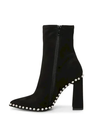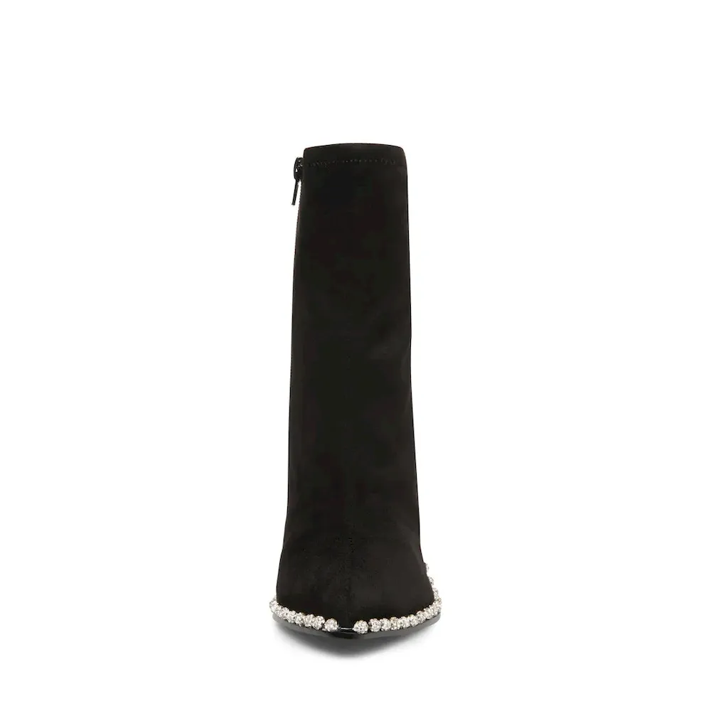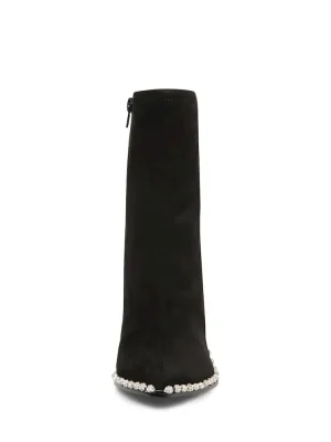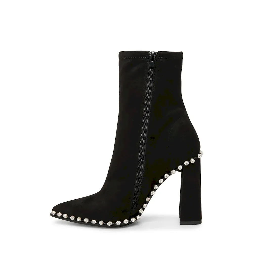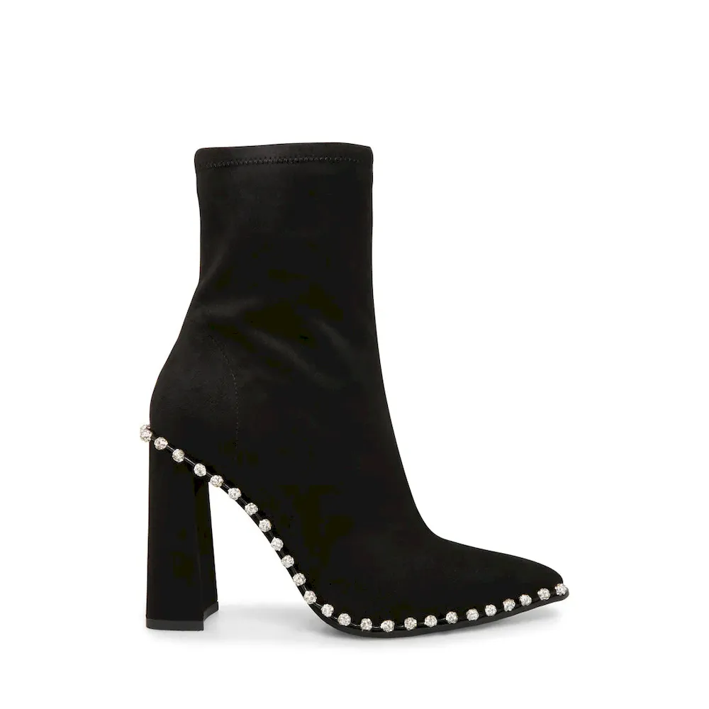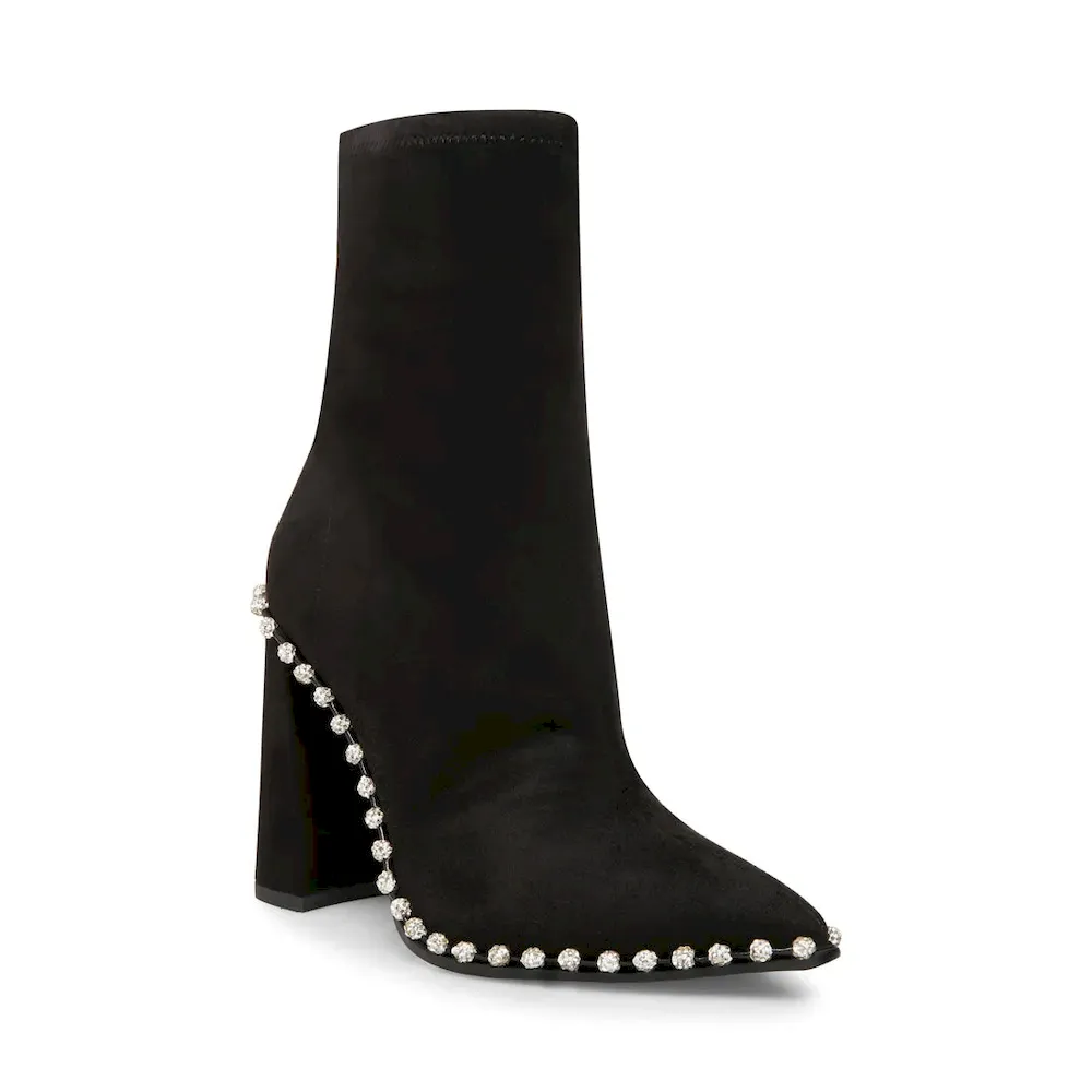 Sparkling stones trim this ankle boot’s sole, outlining a silhouette that’s perfectly of-the-moment. A pointed toe and tall heel lend femininity, while a cropped shaft broadens versatility. Microsuede upper material with stonesFabric liningMan-made sole4 inch heel height9 inch shaft circumference5.75 inch shaft height Imported