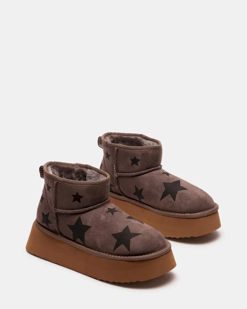 2 inch heel height Micro suede upper material Faux fur liningFaux fur sock Synthetic sole Imported