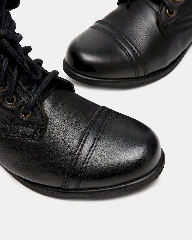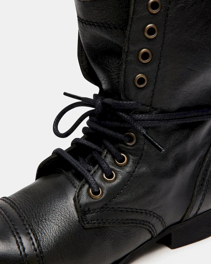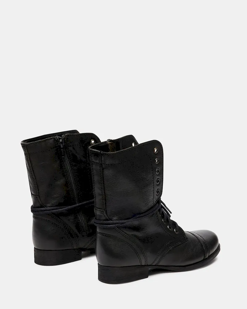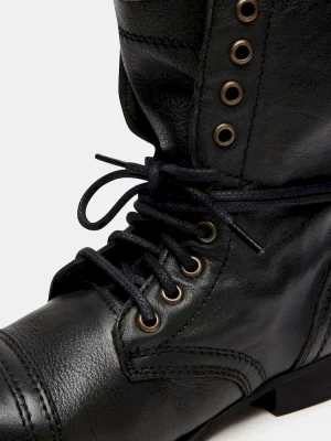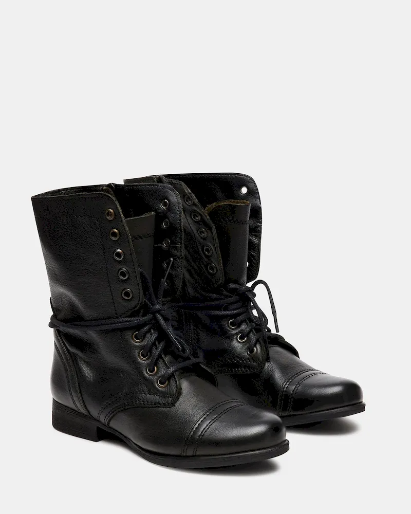Attention troops: This is the perfect combat boot! The TROOPA is a serious statement shoe that is a raging runway sensation. Chic girls all over the world are wearing them with anything from leggings and a flannel, to floral summer frocks.1 inch heel height7.5 inch shaft height11.5 inch shaft circumferenceInside zipperLeather upper materialSynthetic liningSynthetic soleSynthetic sockThis product is made with premium leather and is individually hand finished. As a result, the product can vary slightly from the pictures.Imported