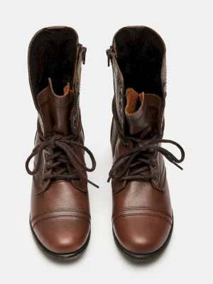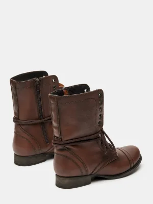 Attention troops: This is the perfect combat boot! The TROOPA is a serious statement shoe that is a raging runway sensation. Chic girls all over the world are wearing them with anything from leggings and a flannel, to floral summer frocks.1 inch heel height7.5 inch shaft height11.5 inch shaft circumferenceInside zipperLeather upper materialSynthetic liningSynthetic soleSynthetic sockThis product is made with premium leather and is individually hand finished. As a result, the product can vary slightly from the pictures.Imported