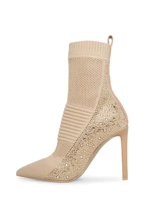 There’s nothing sleeker than a pointy toe, stiletto heeled boot and MAXWELLE doesn’t disappoint. This chic silhouette is complemented by rhinestone accents for a look that’s sure to turn heads.If you are in between sizes, size up a half sizeColor-dipped soft knit bootiePull tab for ease of getting on and offTextile and synthetic upper material with jellystonesUnlinedSynthetic sockSynthetic sole4 inch heel height8.75 inch shaft circumference5.75 inch shaft height Imported