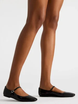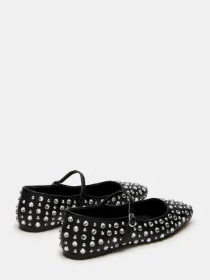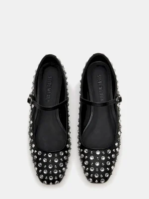 Step into style with these playful flats! The MAPLE ballet flats feature a unique Mary Jane style and a trendy square toe, perfect for adding some fun to any outfit. Experience both comfort and fashion in these must-have shoes..25 inch heel heightVegan leather upper material with rhinestonesVegan leather liningVegan leather sockSynthetic soleImported