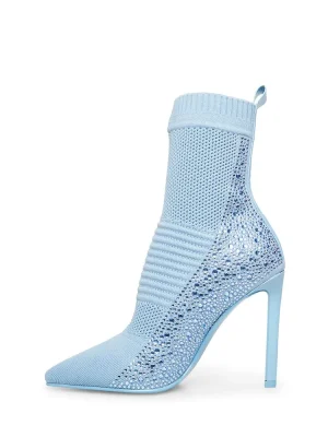 There’s nothing sleeker than a pointy toe, stiletto heeled boot and MAXWELLE doesn’t disappoint. This chic silhouette is complemented by rhinestone accents for a look that’s sure to turn heads. If you are in between sizes, size up a half sizeColor-dipped soft knit bootiePull tab for ease of getting on and offTextile and synthetic upper material with jellystonesUnlinedSynthetic sockSynthetic sole4 inch heel height8.75 inch shaft circumference5.75 inch shaft height Imported