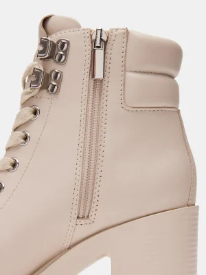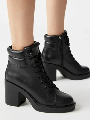 COMPELLING + FRESH + COOLThe ORION bootie features workboot-inspired design elements like speed lacing hooks at the top and a padded ankle collar, with a platform and block heel sole boosting the height.Block heel platform bootieSide zipper closure with front lacingPadded ankle collar3.25 inch heel height8.25 inch shaft circumference4.25 inch shaft heightLeather and synthetic upper materialTextile liningSynthetic sockSynthetic soleImported