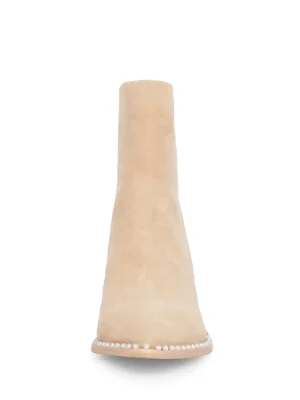 When it comes to cool weather dressing, no outfit is complete without a pair of booties. Set on a stacked block heel, AQUARIUS is trimmed in embellishments for a perfect finish. Soft suede upper with back zipper for ease of getting on and offPearl detailingRaw stacked leather heelPerfect city boot for all day wearLeather or suede upper materialSynthetic and textile liningSynthetic sole2.75 inch heel height9.5 inch shaft circumference5.25 inch shaft height Imported