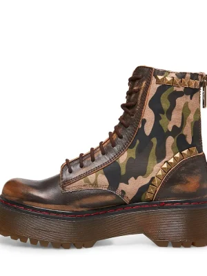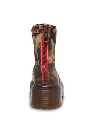 Perfect for the fashionable bad girl, AVENGER makes a tough and trendy statement. This eclectic new combat boot incorporates bold pattern, edgy pyramid studs and an extra-chunky sole for a standout look. Leather and nylon fabric upper material with hardwareLeather liningMan-made sole2 inch heel height1.5 inch platform10 inch shaft circumference5.5 inch shaft height Imported