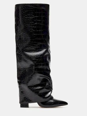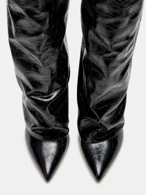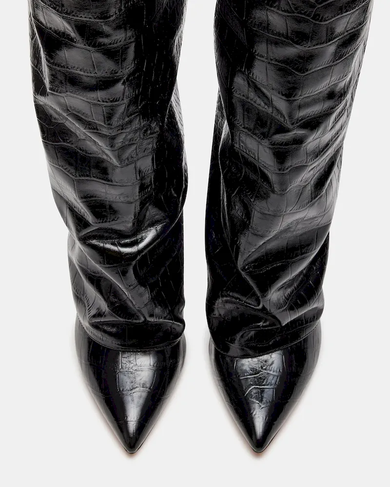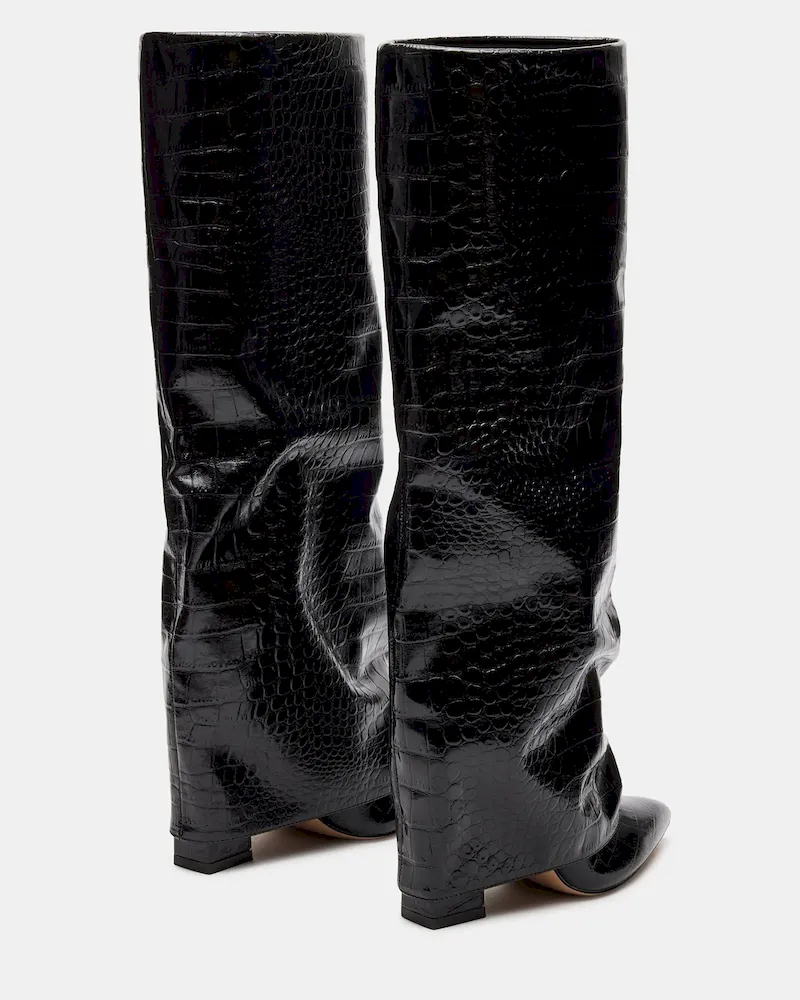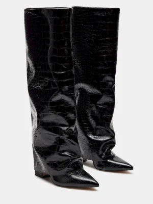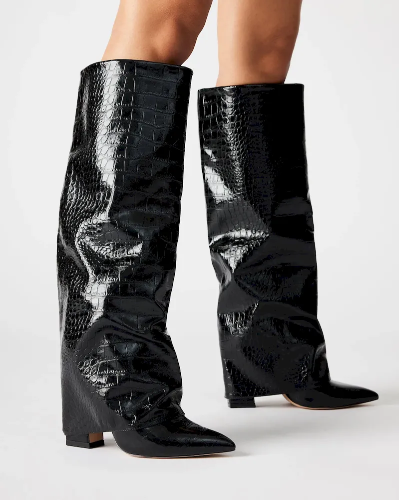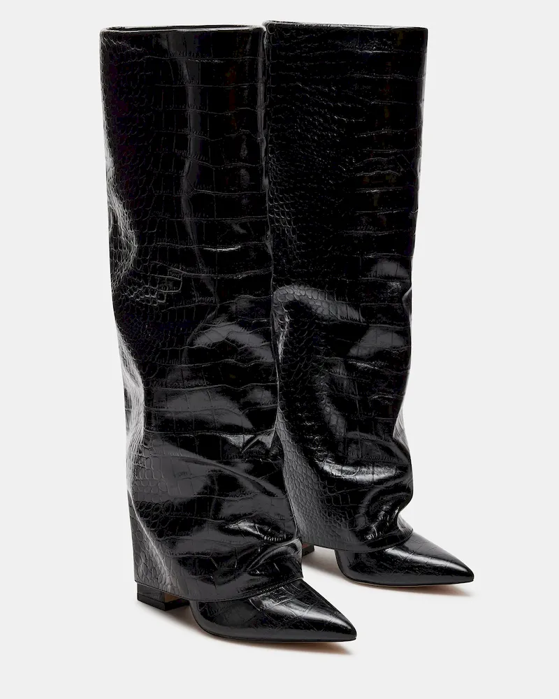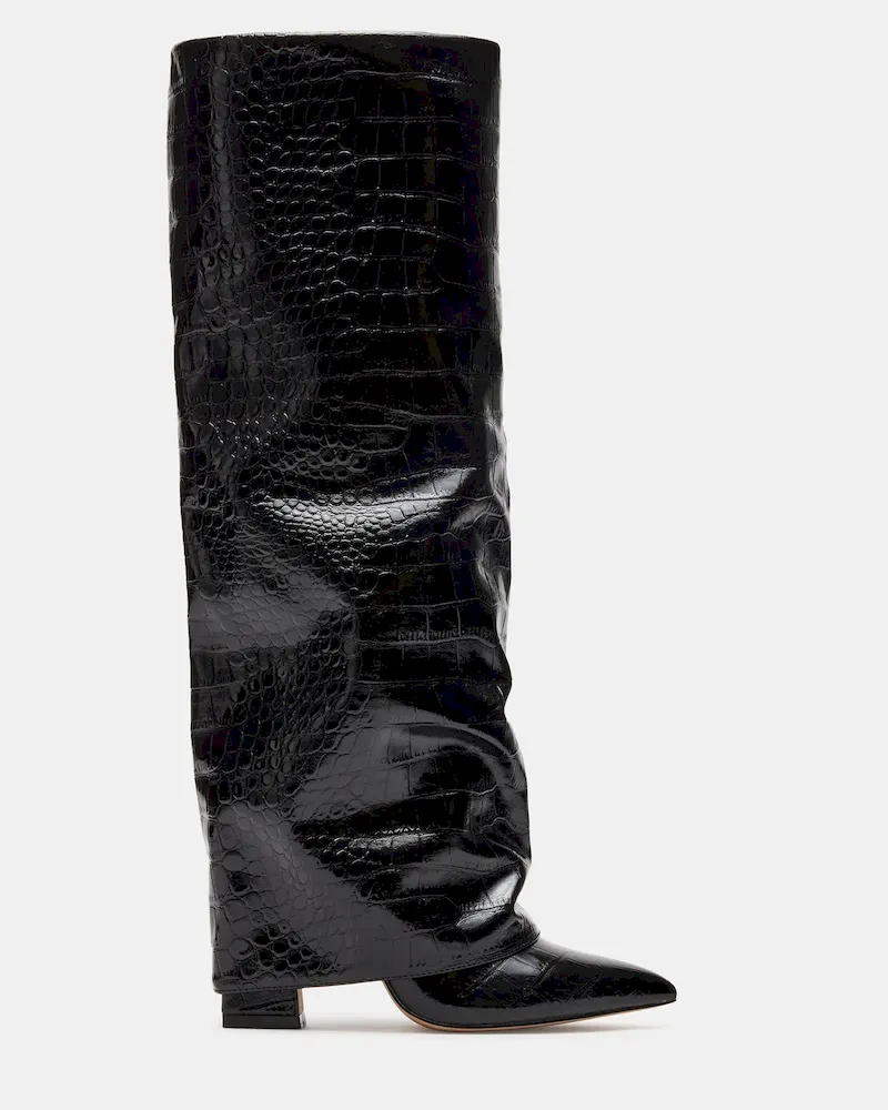 ELEVATED + SOPHISTICATED + DIFFERENTA foldover construction gives the STUNTIN knee boot a slouchy look, with the pointed toe and block heel peeking out from underneath.Point toe block heel foldover knee bootSlip-on style with wide shaft3.75 inch heel height Size 6 measurements: 13.75 inch shaft circumference, 14.5 inch shaft heightSize 8 measurements: 16 inch shaft circumference, 15 inch shaft height Size 10 measurements: 17 inch shaft circumference, 14.5 inch shaft heightVegan leather upper material Textile liningVegan leather sockSynthetic sole Imported