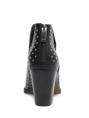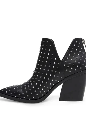 Perfect for the cowgirl with a rebel streak, this take on the always-flattering CAMRYN bootie is subtly edgy with studded embellishment. A cropped shaft ensures versatility, while dipped sides incorporate a trendy touch.Leather or man-made upper materialMan-made liningMan-made sole3.75 inch heel height3 inch shaft heightFunctional back zipper Imported Imported