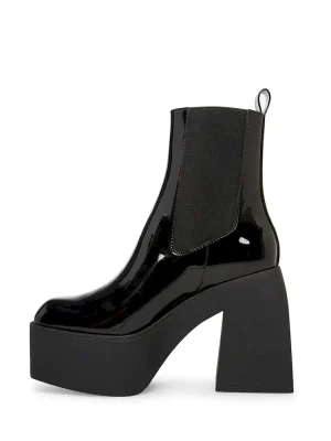 DRAMATIC + BOLD + MODThe TEASER bootie takes the classic ’60s Chelsea boot and stacks it on top of a chunky ’70s platform for an altogether new look.Platform heel Chelsea ankle bootSlip-on style with stretch goresSquare block heel with front platformSquared toe4.25 inch heel height2 inch platform9 inch shaft circumference5.5 inch shaft heightSynthetic and textile upper materialSynthetic and textile liningSynthetic soleImported