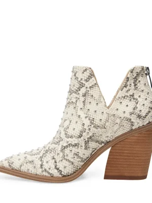 Perfect for the cowgirl with a rebel streak, this take on the always-flattering CAMRYN bootie is subtly edgy with studded embellishment. A cropped shaft ensures versatility, while dipped sides incorporate a trendy touch.Leather or man-made upper materialMan-made liningMan-made sole3.75 inch heel height3 inch shaft heightFunctional back zipper Imported Imported
