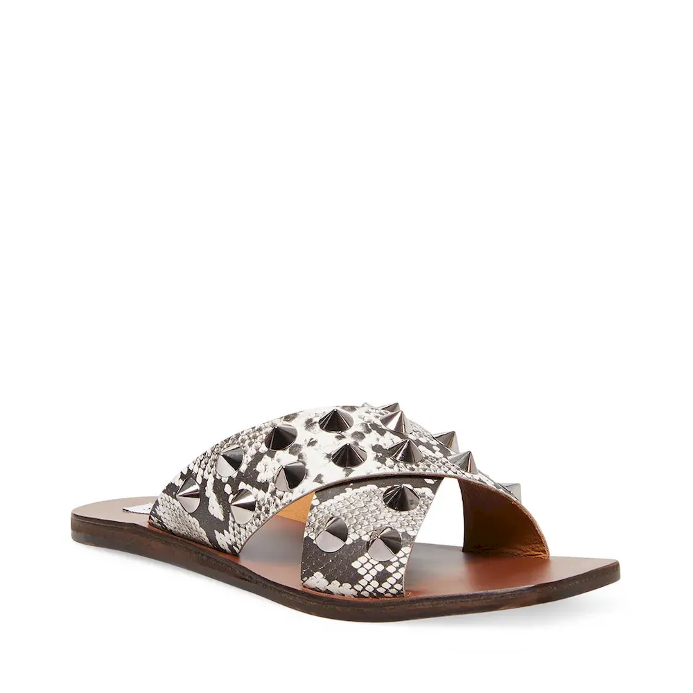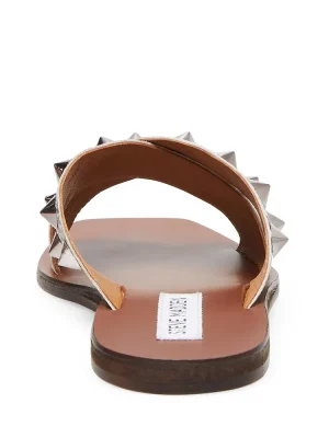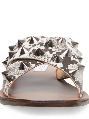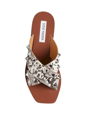 Crossing an easy silhouette with edgy embellishment, SPIKED is among this season’s prime sandal picks. Slide into the style for a fierce-without-trying look. Leather upper material with hardwareMan-made liningMan-made sole.25 inch heel height Imported Imported