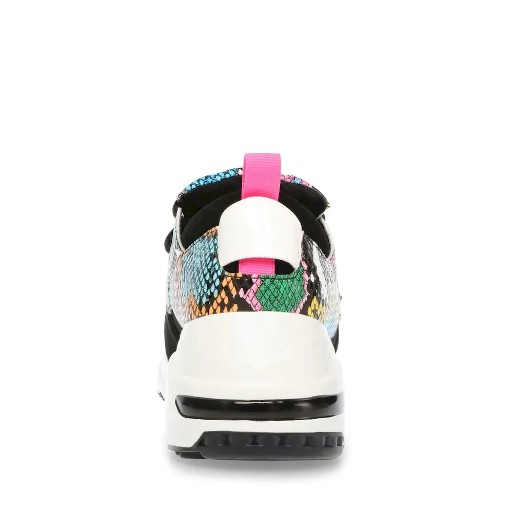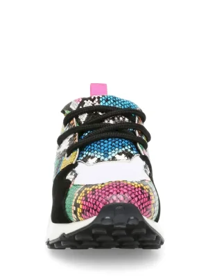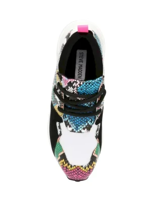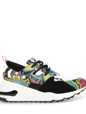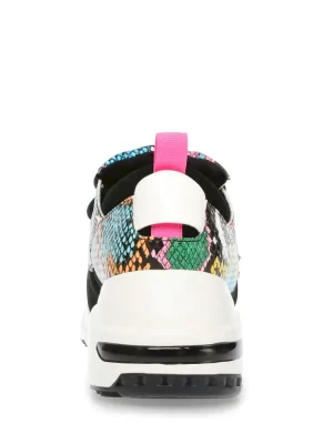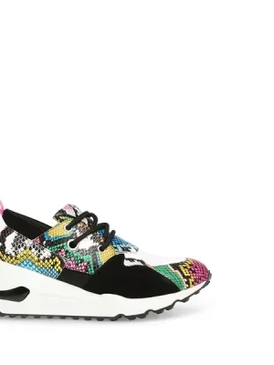 rFashion and function collide this season to form the CLIFF sneaker — a hot new standout with a collaged construction and playfully exaggerated proportions. Incorporating mixed prints and creative color blocking, this kick is suited for runways and city streets alike!rrrLeather, fabric, and man-made upper materialrrTwill fabric liningrrRubber solerr2.5 inch heel heightrr.5 inch platformrr Imported