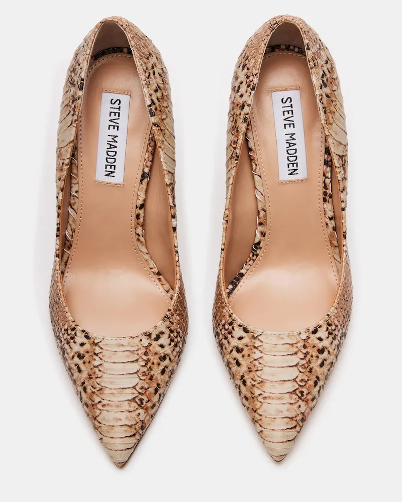 SHARP + TIMELESS + POWERFULEVELYN perfects the point toe stiletto pump without touching the classic look. This style is iconic for its ability to visually lengthen the leg and EVELYN definitely delivers on that promise. You might not even notice the difference – until you put her on. The updated lines give you an easy, balanced step while the silhouette is sleeker and cleaner than ever.Point toe stiletto pumpSlip-on styleStiletto heelPoint toe4 inch heel heightVegan leather upper material Vegan leather liningVegan leather sock Vegan leather soleImported